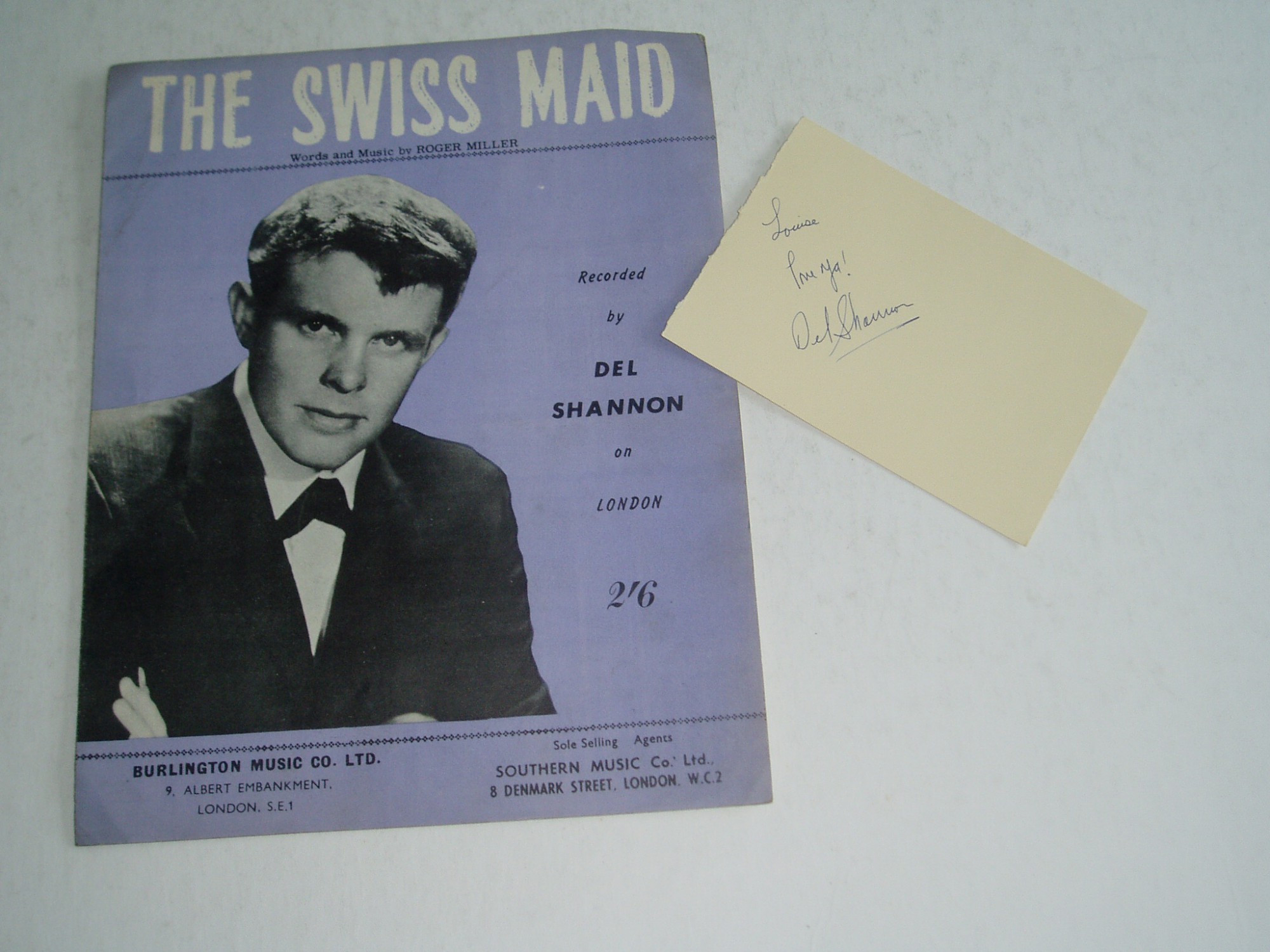 DEL SHANNON autograph on page 1960s PLUS Sheet Music